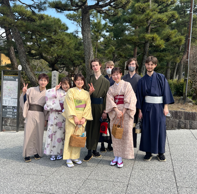 北欧好きな母の趣味で、我が家のインテリアはすべて北欧風です。そのため幼少期から北欧に馴染みがあったことと、私自身がムーミンが大好きで、絵本を原語のスウェーデン語で読めたらいいなと思って専攻に選びました。1クラス20人弱の少人数制で、じっくりと学んでいます。英語は、留学生と交流する際によく使っています。ボランティアで留学生への日本語指導をしていて、先日は彼らといっしょに京都に行き、着物で観光してきました。授業でも、留学生が日本語の理解で困っている時に通訳のようなサポートをすることがあります。