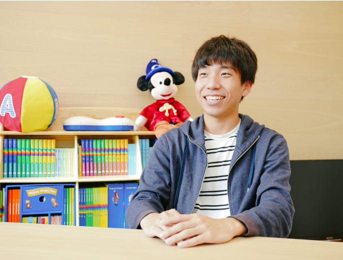 キャストプレイルームで、最初ものすごく内気でお母さんから離れられなかった子が、レッスンの最後には僕に向かって「リュウノスケー!」と駆け寄ってきてくれる時に、ものすごく嬉しくなります。キャストとして心がけていることは、お子さんに絶対に無理をさせないこと。強制は絶対にしません。無理に参加させず、まずはみんなで楽しく遊んでいるところを見てもらって、“英語は楽しい”と感じてもらうことが大切だと考えています。