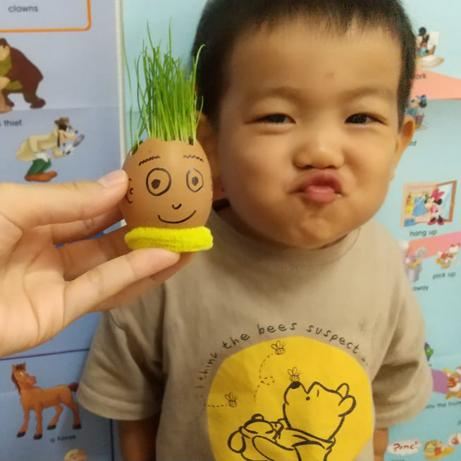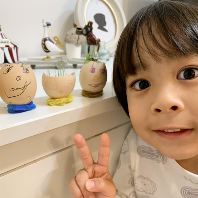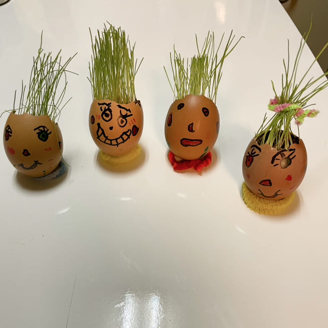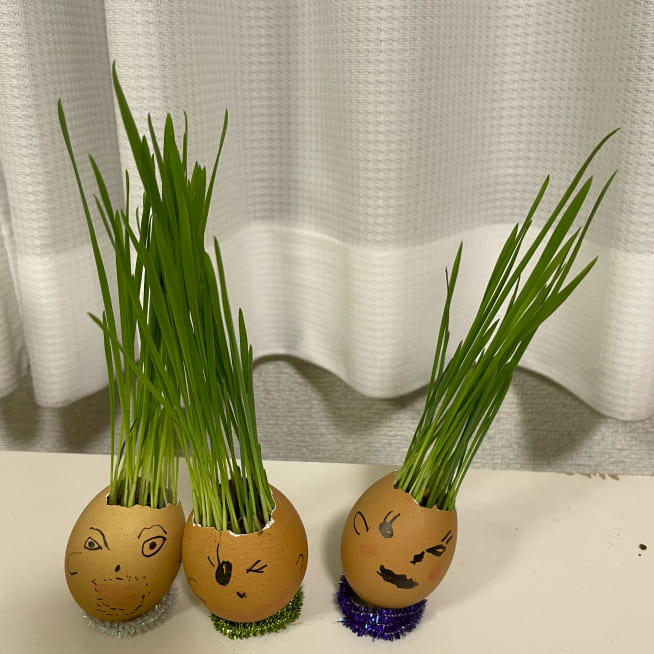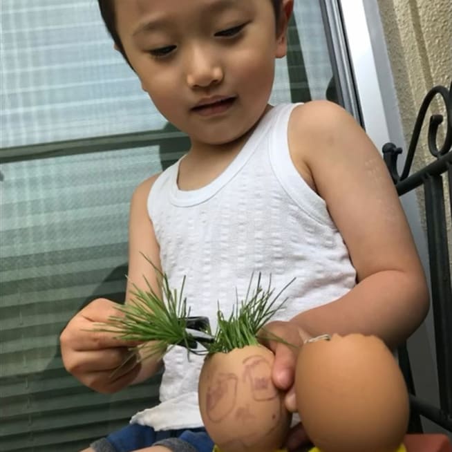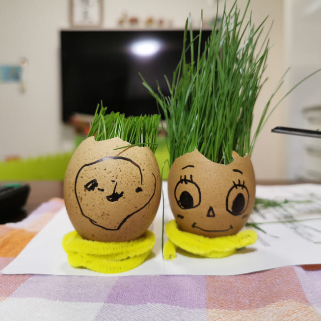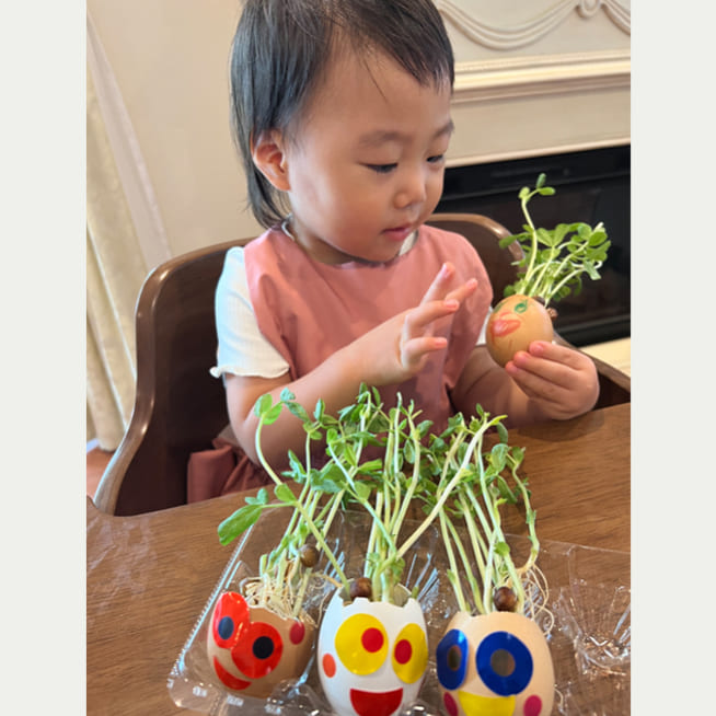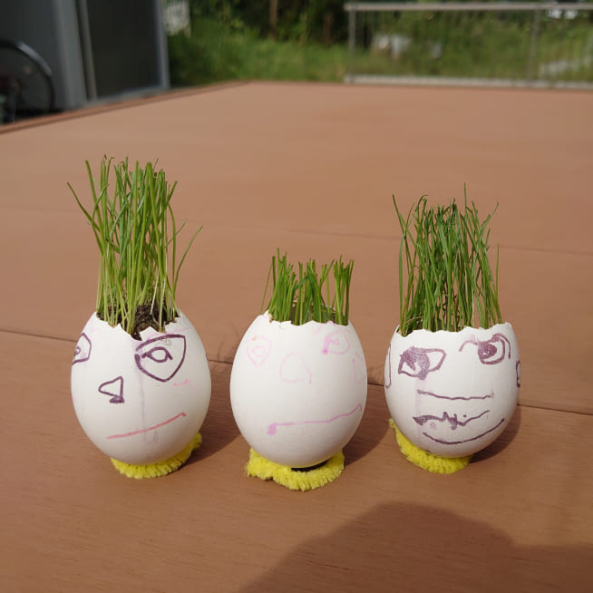 エッグヘッド作るのが楽しかったみたいで、もっと作りたいといい😅次は、いっぱいグラスシードを入れよう!