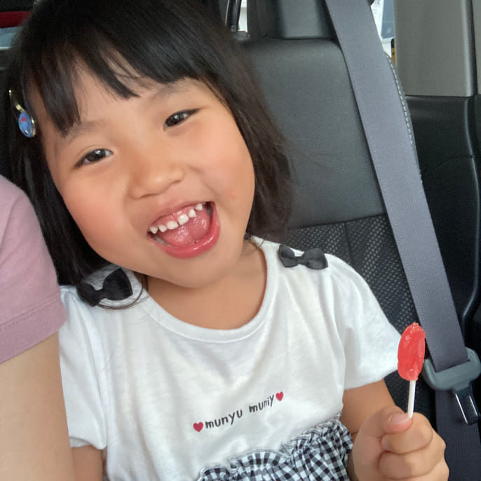 車の中は、DWE以外のものが目についたり話題になったりしないように、置くのはDWEのディスクだけにしました。移動中には、SA(シング・アロング)のCDかズィッピーのDVDをかけ流します。家に着いても、そのまま車の中でお菓子を食べながら、「最近この歌が上手になってきたね」とおしゃべりしたり、一緒にCDを聞きながら歌の練習をしています。車の中にはお菓子も常備!下の子が生まれてから上の子がつい後回しになっていたので、私と2人きりでお菓子を食べたり歌ったりできるこの時間が楽しいみたいです。