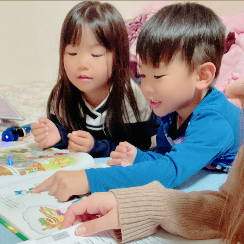 妹のほうが英語を理解したり歌ったりできるようになるのが早いので、お兄ちゃんが悔しくて大泣きをすることもありますが、ほめたり励ましたりしながら「いまはできなくてもいつかできるようになるだろう」と長い目で見るようにしています。