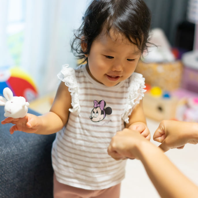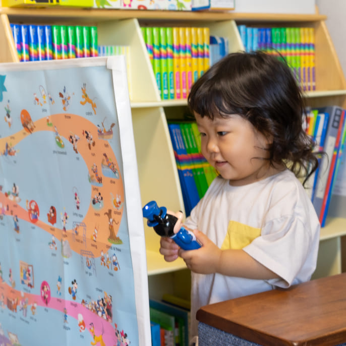 基本的には、土日とかじっくり時間がとれるときですね。でも、平日で忙しいときも、娘が「やりたい」と言って持ってきたら、なるべくがんばるようにしています(笑)。かけ流していると「ママやパパも一緒に」と誘われて、時間が許す限りは家族全員で遊ぶこともあります。最近は自分が知っているものを見つけるのがすごく好きみたいなので、「いま “come in” って言ってる!」などと言ったりするときは、「あ、これはこの間やったやつだよね!」というふうに一緒に喜びを共有したり共感したりするようにしています。