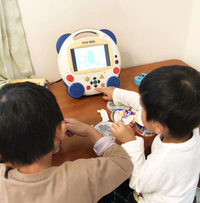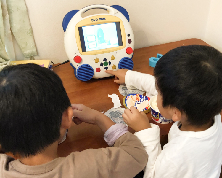 幼稚園の荷物を片づけたら、TAC1枚を通してからYouTube 30分&おやつタイム。TEの曜日は、おやつの前にレッスン。次男はお兄ちゃんほどYouTubeを見たがらないので、おやつが楽しみになっている。