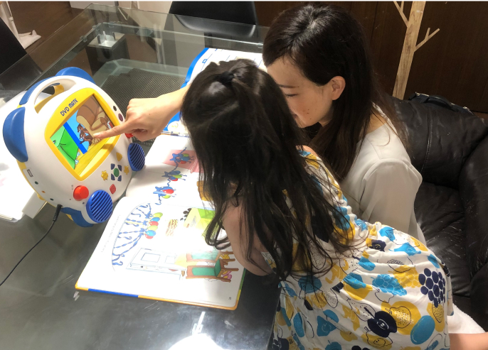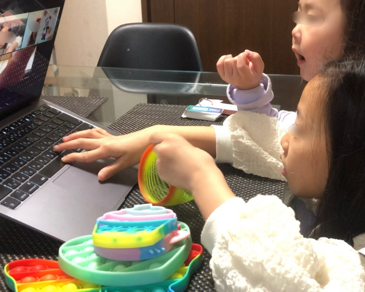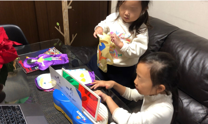 今は、3歳の次女が、DWEを活用しています。DVDは自分で操作してよく見ているのですが、トークアロング・カードをあまり活用できていなかったので、同じ悩みを抱える数人のお友だちと一緒に、ZOOMを使った取り組みを始めたところです。週に3回、オンラインで集まって、各家庭でそれぞれカードを流すようにしているんです。