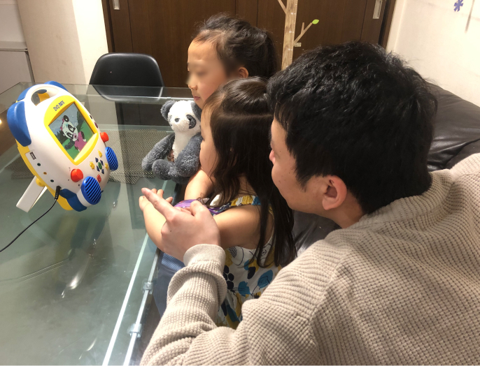 パパはいつも、DWEを子どもにやらせるのではなく、子どもと一緒に遊んでいます。一緒に遊ぶのに面白そうな教材を選んで、見せるのではなく、自分も一緒に理解するために毎回真剣に見ているんです。だから、娘たちも“やらされている”と感じることがなく、“DWEをやるのが自然”と感じているようです。