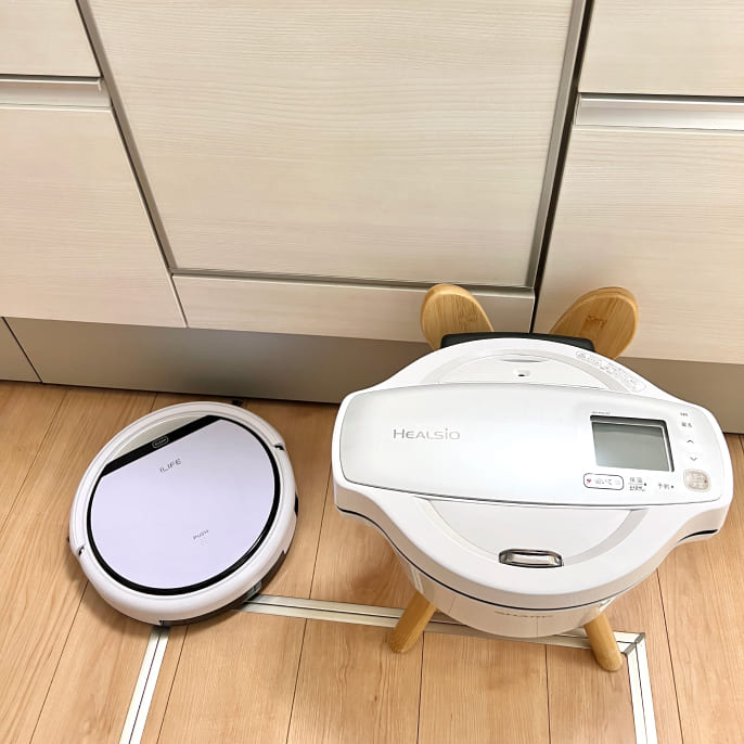 料理は食材を切ってボタンを押せばできあがるホットクック、お皿洗いは食洗機、お掃除はロボット掃除機に、というように、毎日の家事を家電と分担することで、子どもとのDWE時間を確保できるようにしています。
