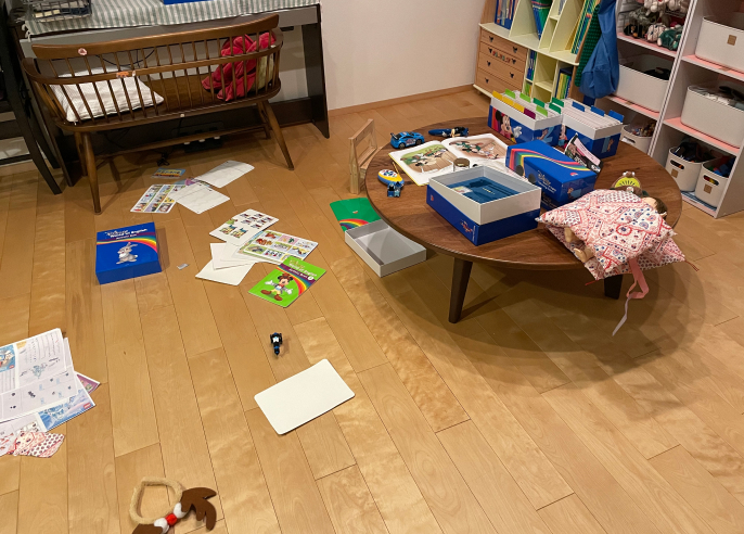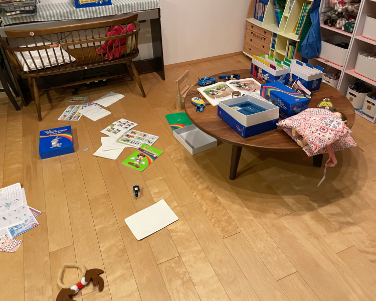前日の夜に遊んだもの(トークアロング・カードなど)が散らかっていたら、片づける。