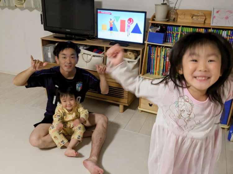 そして水曜だけは家族みんなが大好きなイベント、ファミリー・ダンスパーティーを開催! DVDの映像に合わせて、みんなで踊ったり、体操したりするんです。通常のDWEタイムだけだと、僕自身が飽きちゃうので(苦笑)。週の真ん中は体を動かすイベントですっきりリフレッシュして、翌日からの通常メニューをまた楽しく取り組めるようにしています。