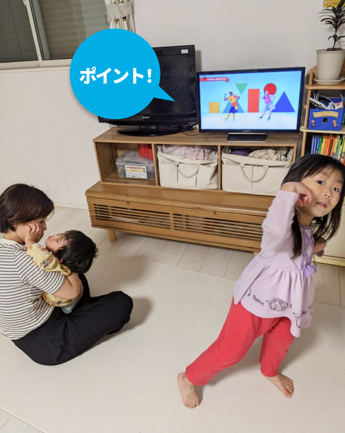 家族みんなが大好きなファミリー・ダンスパーティーでは、DVDに合わせてレッツダンス♪
