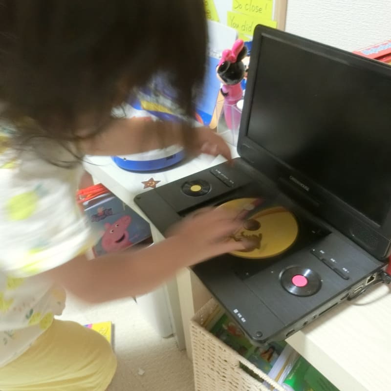 もちろんDVDやCDを使うのもあきらめず、2~3ヵ月に1度はチャレンジ。するとだんだんと慣れてきたのか、2歳になってすぐ怖がらずにかけ流しができるようになったんです! それからは、朝起きてから夜まで、ずっとシング・アロング(SA)のDVDのかけ流しをしています。