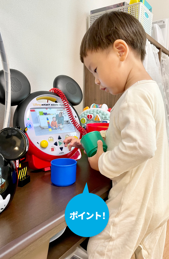 子どもが興味を持ったタイミングを逃さないことが大切だと考えています。毎日、DWEに取り組めるのは保育園から帰ってきた後の少しの時間だけなので、息子の興味関心をしっかりと捉えて、その時間を少しでも充実させたいと思っています。かけ流しができずにいた時期も、DWEの活用はあきらめず、タイミングを逃さないことを心がけていたおかげで、英語の学びを止めることなく、成長させることができました。2歳になった今は、息子は英語が大好きになり、♪ABCソングは完璧に歌えて、数字や色の単語もかなり言えるようになりました!