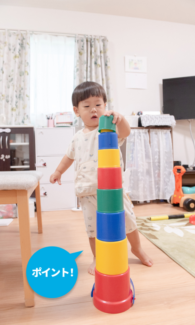 でもそれは、決してほったらかしにするという意味ではありません。自由に遊ぶ息子の行動を見守って、彼が興味を持ったものはその場ですぐに与えられるようにしているんです。例えば、DVDを見ていて、息子が自分もおもちゃで遊びたいと思い始めているようだったら、すぐにそのおもちゃを渡せるように準備をしておくといったカンジです。