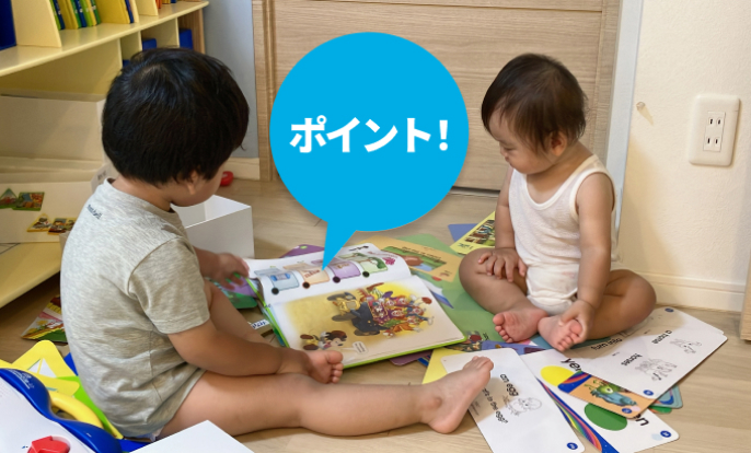 1歳9ヶ月と0歳1ヶ月の赤ちゃんが行ってここ最近ディズニーの英語を始めました。1歳の子のお気に入りはPrayalong1の方が好きで何回も聞いています。カードを通すのも好きでさせてはいますが他の教材もちょっとずつ興味を示すようになってきてるのかなと思ってます。この記事を読んでみて子供の興味とやりたいことをさせてもいいのかと思いました。やってみようと思います。