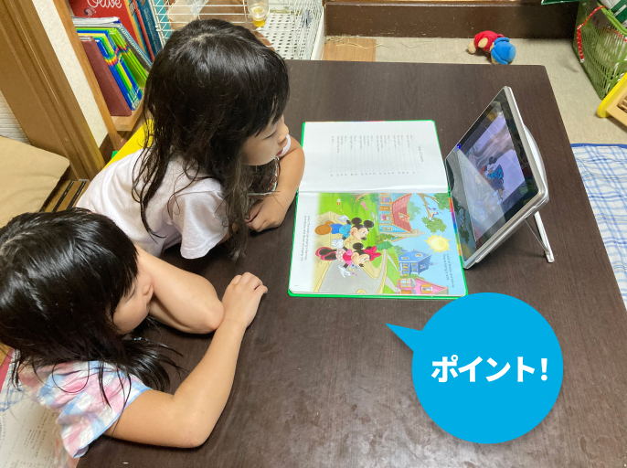 CDとDVDのかけ流し、トークアロング・カード(TAC)、BOOK読みは毎日必ず「やらねばあかん!」と決めて、SBSも1週間に2~3レッスンもやらせていました。でもまだ幼い長女がこの量をこなすのは、どう考えても無理だったんですよね(苦笑)。私もノルマをこなせないことにイライラばかりしていました。しばらくして、「この状況は私のやる気だけが空回りしていて誰もハッピーではないな」と気付いて、そこからは我が家のペースでのんびりと取り組むようになりました。