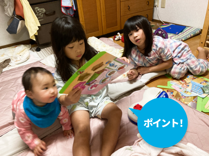 長女が、妹たちにやさしく教えてあげてくれています!