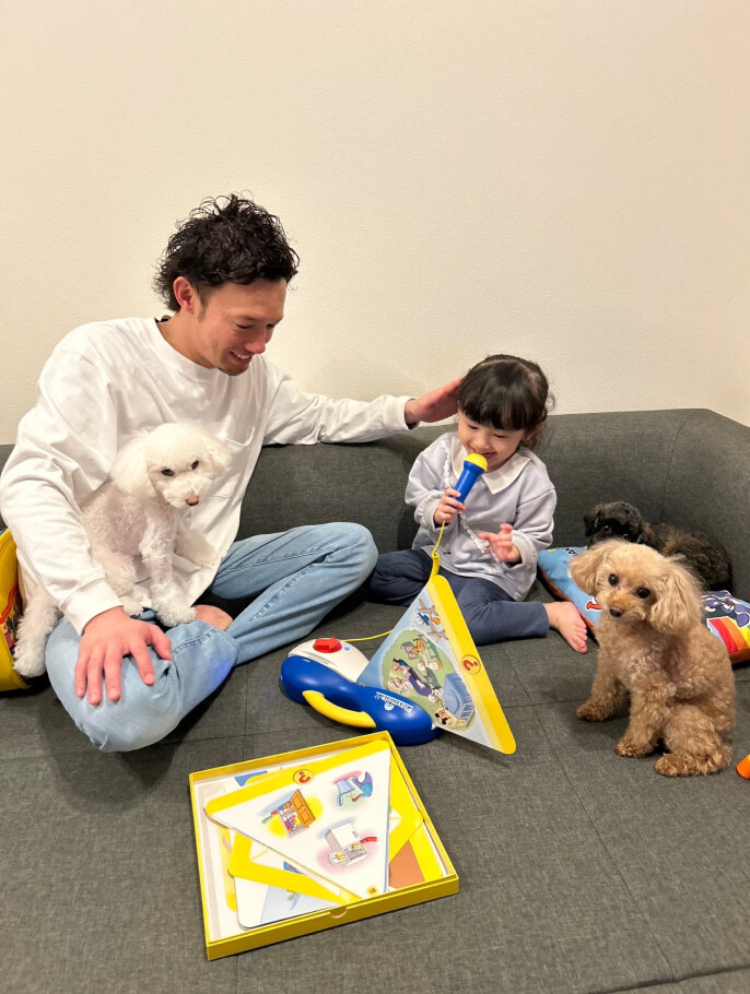 パパとの会話は日本語。今後、幼稚園に通い始めたら、英語に触れる機会をどう増やすかが課題だと考えています。
