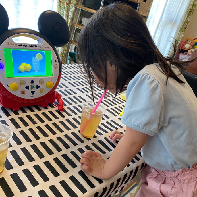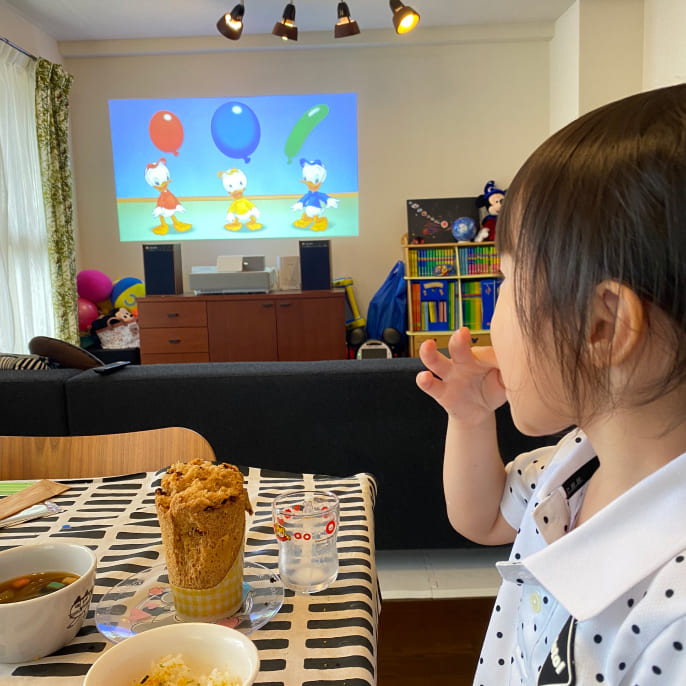 DWE1年目は朝起きてから夜寝るまでCDをかけ流し。でも1日中家にいるので、私が飽きてしまって…(笑)。そこで、同じことを繰り返さない!と決めました。ごはんのときだけはテレビをつけてもいい習慣なので、食事中にブルーレイを見るようにしています。「今日はこれ見ない?」と娘に聞くとDWEをかけ流せる確率が高いです。