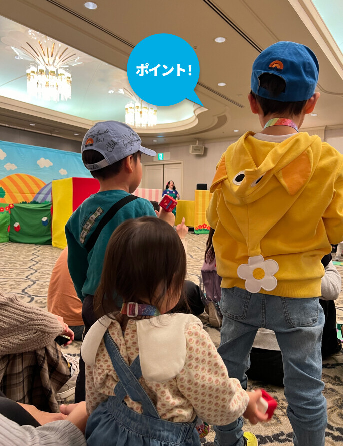 その中の1組とは、ZOOMでいっしょにKid’s Worldに取り組んでいます。千葉・東京のユーザーさんたちとは、週末イベントにいっしょに参加しています。イベントも私と2人きりだと、ただ座ってじーっとステージを見つめているだけですが、お友だちがいっしょだと息子はテンション高く、終始ノリノリで楽しめます(笑)。キャストプレイルームも、少人数形式でやさしいキャストさんたちと遊べることが嬉しくて、毎回楽しんでいました。