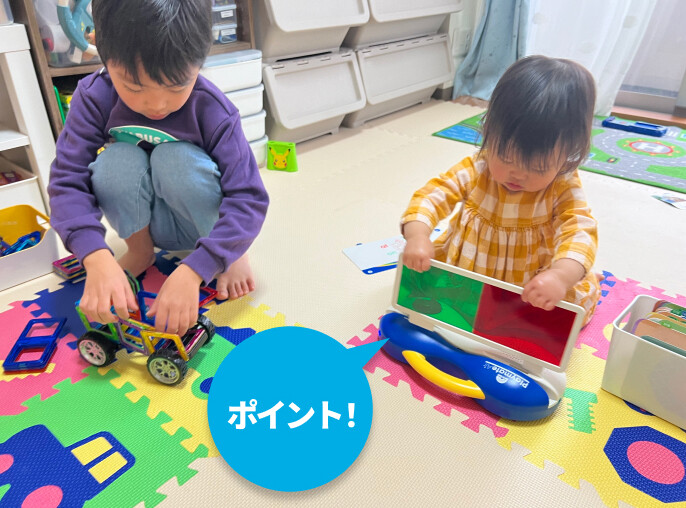 妹が通すTACカードの音声が、別のおもちゃで遊んでいる息子の耳にも届いていることを願ってます!