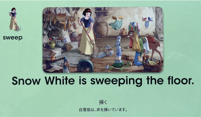 白雪姫の周りには小さなお手伝いさん達がたくさん。