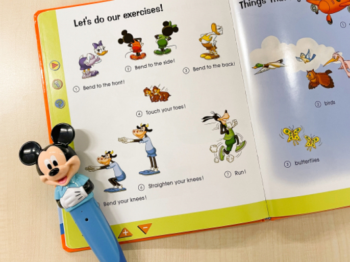 「Let’s do our exercises!」は、ミッキー・マジックペン・セットのファン・ウィズ・ワーズ絵本①38ページに収録されています👇📖
