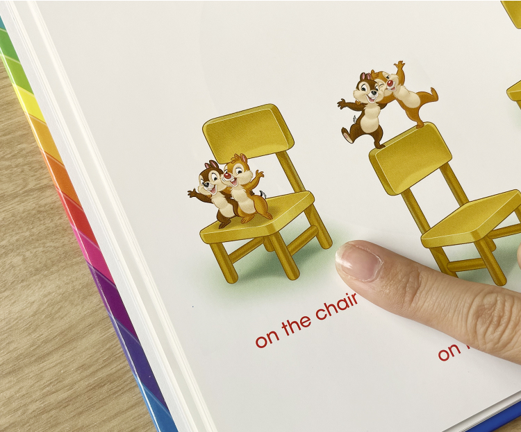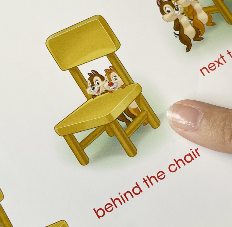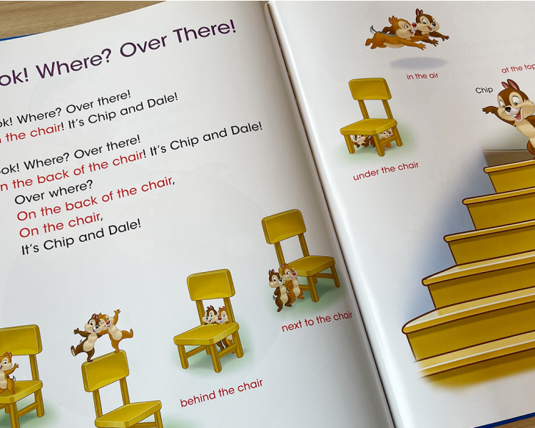 この場所を示す言葉がでてきたら、歌詞通りの位置にいるチップ&デールを絵本の中から見つけて👀