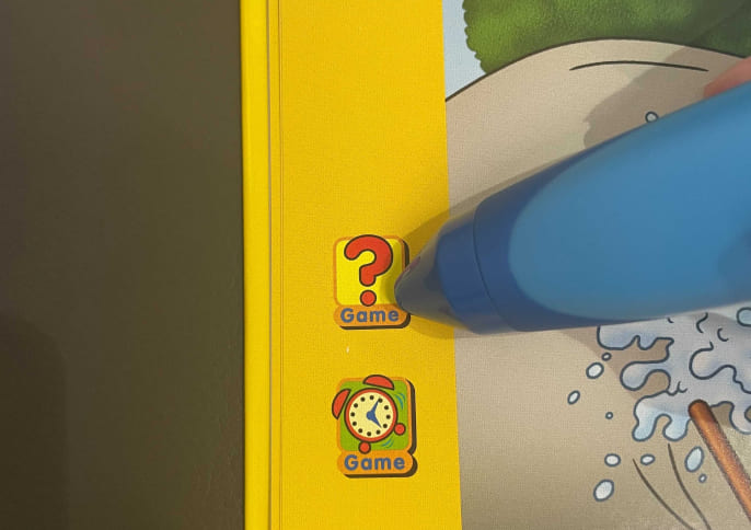 質問を聞いてペンでタッチ☆するだけなので、発語がまだのお子さんでもとっても簡単に遊べます。