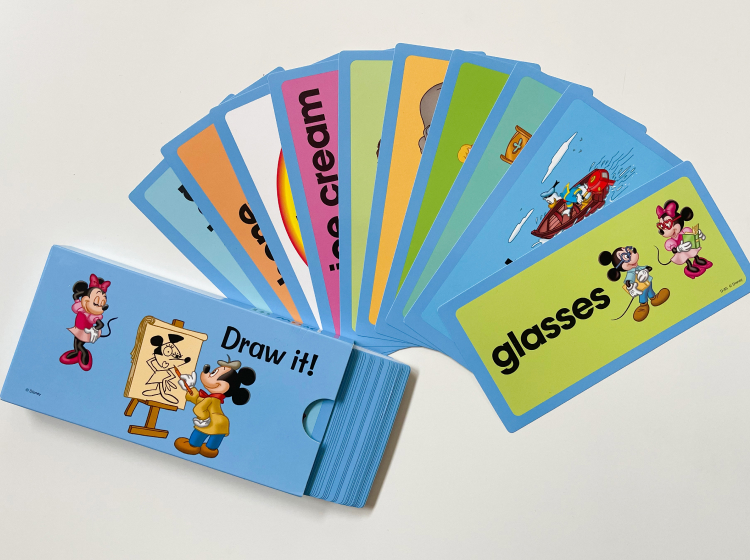 お子さんに、広げた「Draw it!」カードの中から聞こえてきた音声と同じカードを見つけてもらってください👆