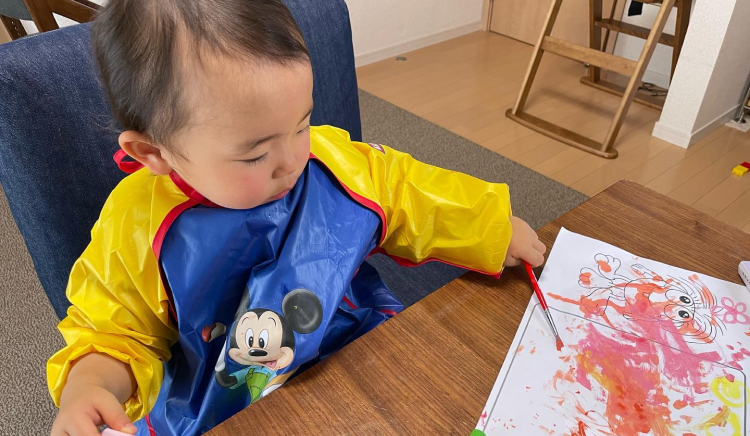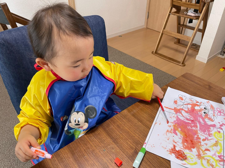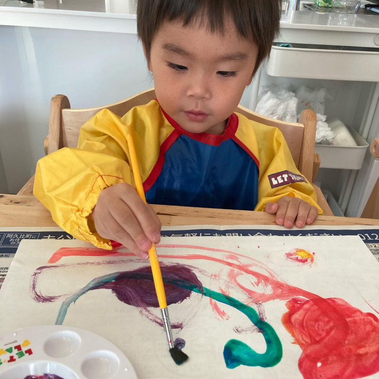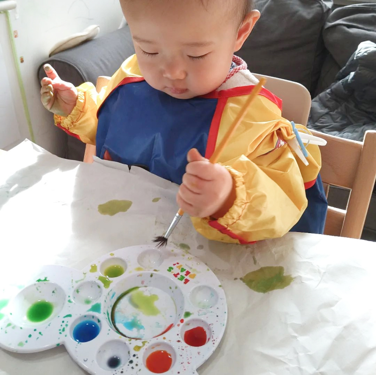 ママパパは、絵の具を出したり、筆を洗ったり、パレットを拭いてあげたり、サポートしてあげてくださいね👆