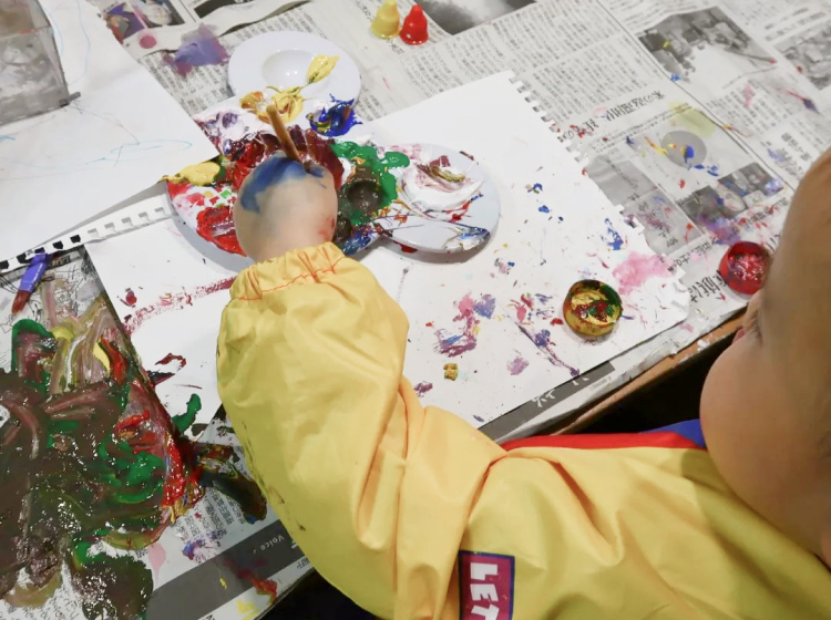 絵の具、パレット、筆をお子さんの手元に用意したら、もう準備は完了💡