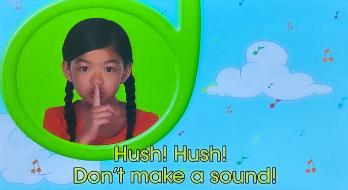 “Hush! Hush!”という歌詞を繰り返して、「音を立ててはいけません」と歌う子守歌です👆