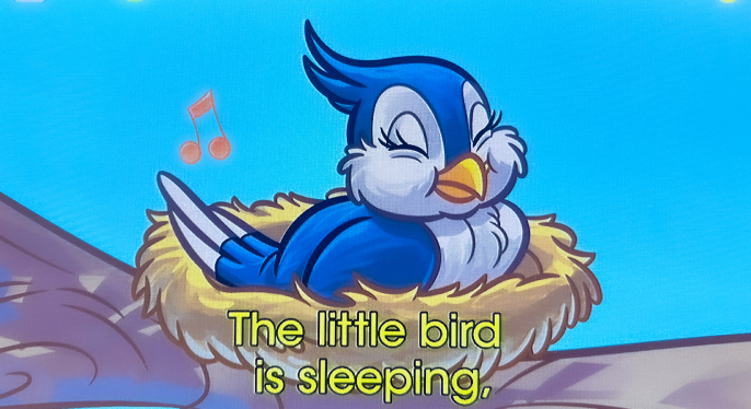 木の枝で寝ている小さな鳥さん🐦を起こさないように・・静かにしようね・・と歌っています👆