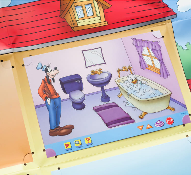 ミッキー・マジックペン・アドベンチャーセット付属アクティビティ・カードの一つ、「Let’s play house!」の中で、グーフィーのバスルームを作るゲームができます。マジックペンから流れるグーフィーの指示に従って、お部屋を完成させましょう!